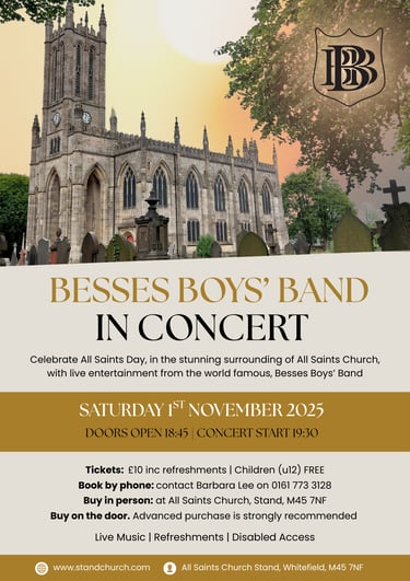 Celebrate All Saints Day, in the stunning surrounding of All Saints Church with live entertainment from the world famous Besses Boys' Band
